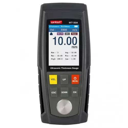 Ultradźwiękowy miernik grubości Benetech GM100 jest stosowany do dokładnych pomiarów grubości różnych materiałów przemysłowych. Dzięki swojej uniwersalności, znajduje zastosowanie w przemyśle przy monitorowaniu grubości pojemników ciśnieniowych oraz podczas kontroli handlowej elementów metalowych.